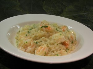 Risotto is a staple in our kitchen repertoire.  It is a hearty dish that is quick and easy to prepare with minimal mess. Once the basic technique is mastered, any number of different variations can be created by simply changing the main ingredient (in this case Shrimp) and the type of stock used.