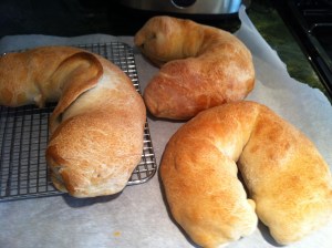 • Place on pan greased slightly with olive oil, put a very little olive oil over top of bread for browning.