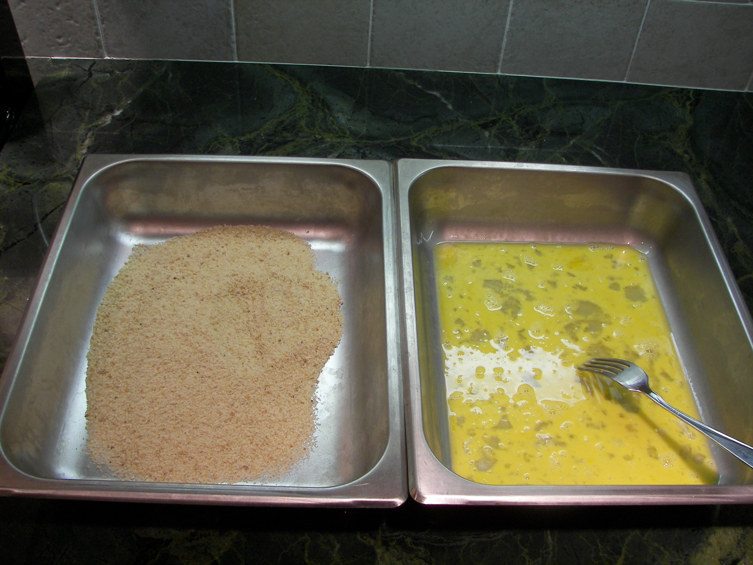 - Note: In classical French cookery the process of applying a bread crumb coating is called “a la Anglaise”. Traditionally, this technique requires the main ingredient to be dusted with flour before being dipped into the egg wash-breadcrumb mixture. The flour prevents the coating from actually adhering to the meat. After frying, it forms a shell around the main ingredient that seals in moisture and flavor. It can be easily scraped off when fully cooked. For Veal Milanese, the flour is omitted because desired result is to have the breadcrumbs adhere directly to the meat.